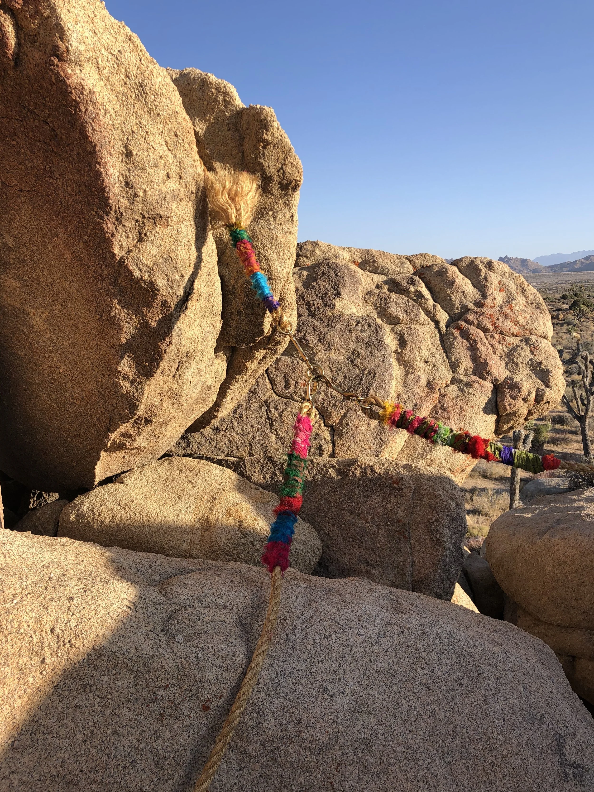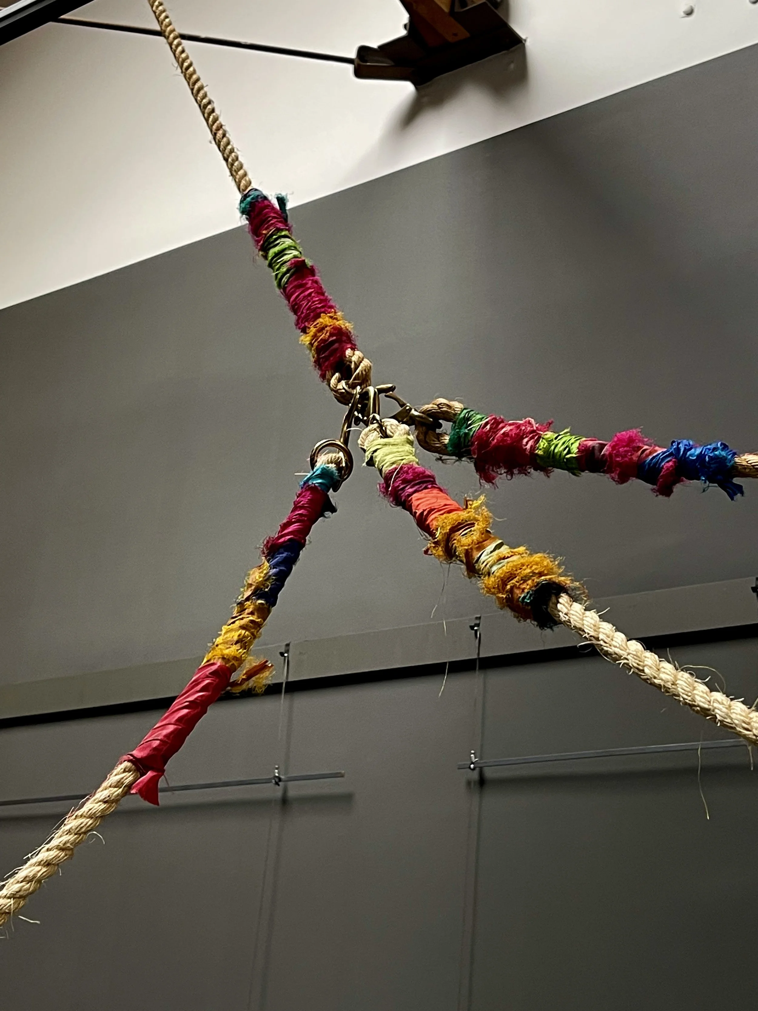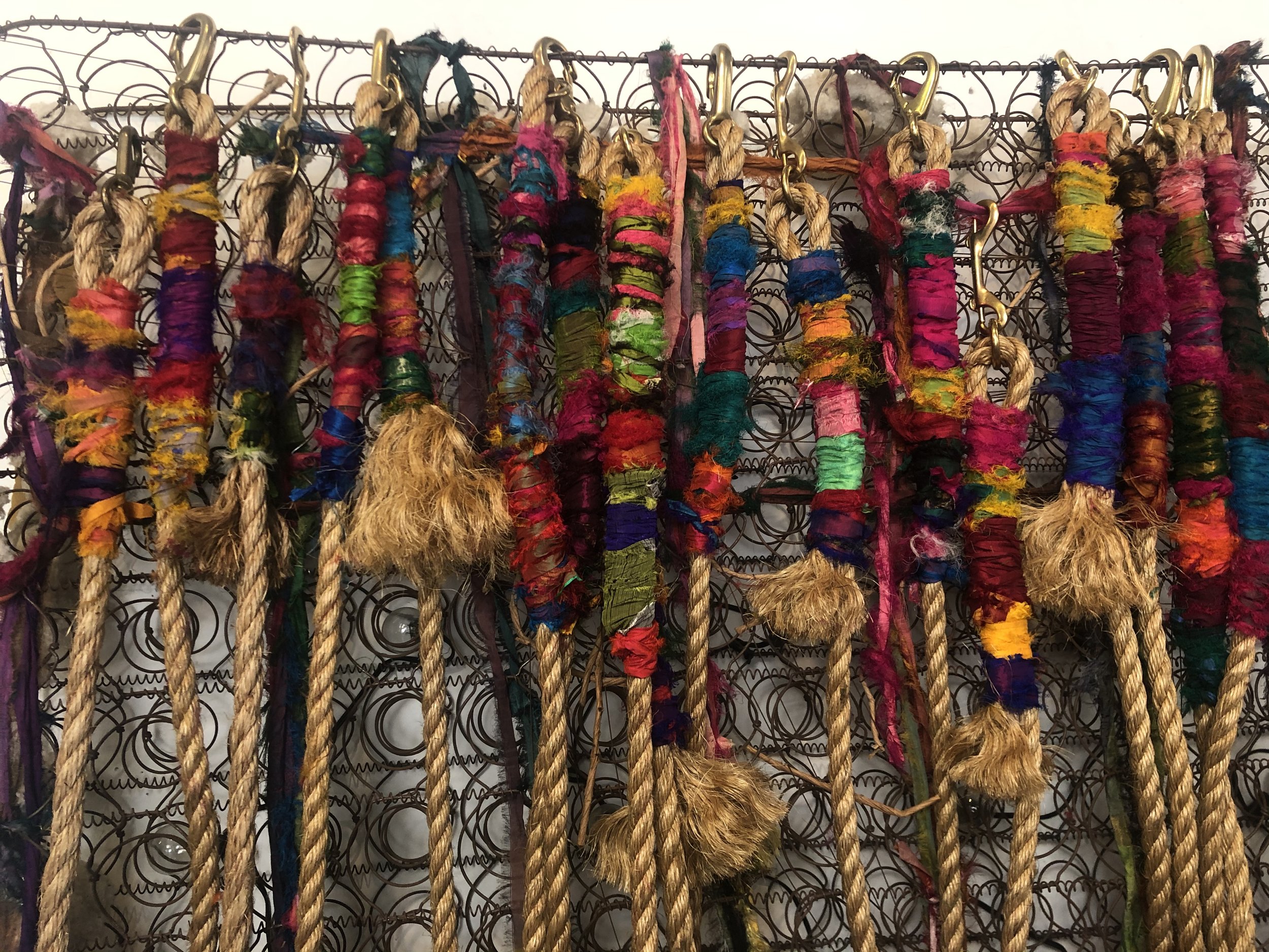 Ongoing Ropes Project | Natural rope, silk sari scraps, brass hardware